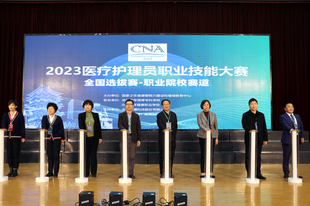 2023年12月1日,由国家卫生健康委能力建设和继续教育中心主办,沧州医学高等专科学校、北京百洋健康职业学校联合承办,天津开云登录口网页版科技股份有限公司、慧医(天津)教育科技有限公司等单位协办的首届医疗护理员职业技能大赛(职业院校赛道)全国选拔赛开幕式在沧州医学高等专科学校隆重举行。